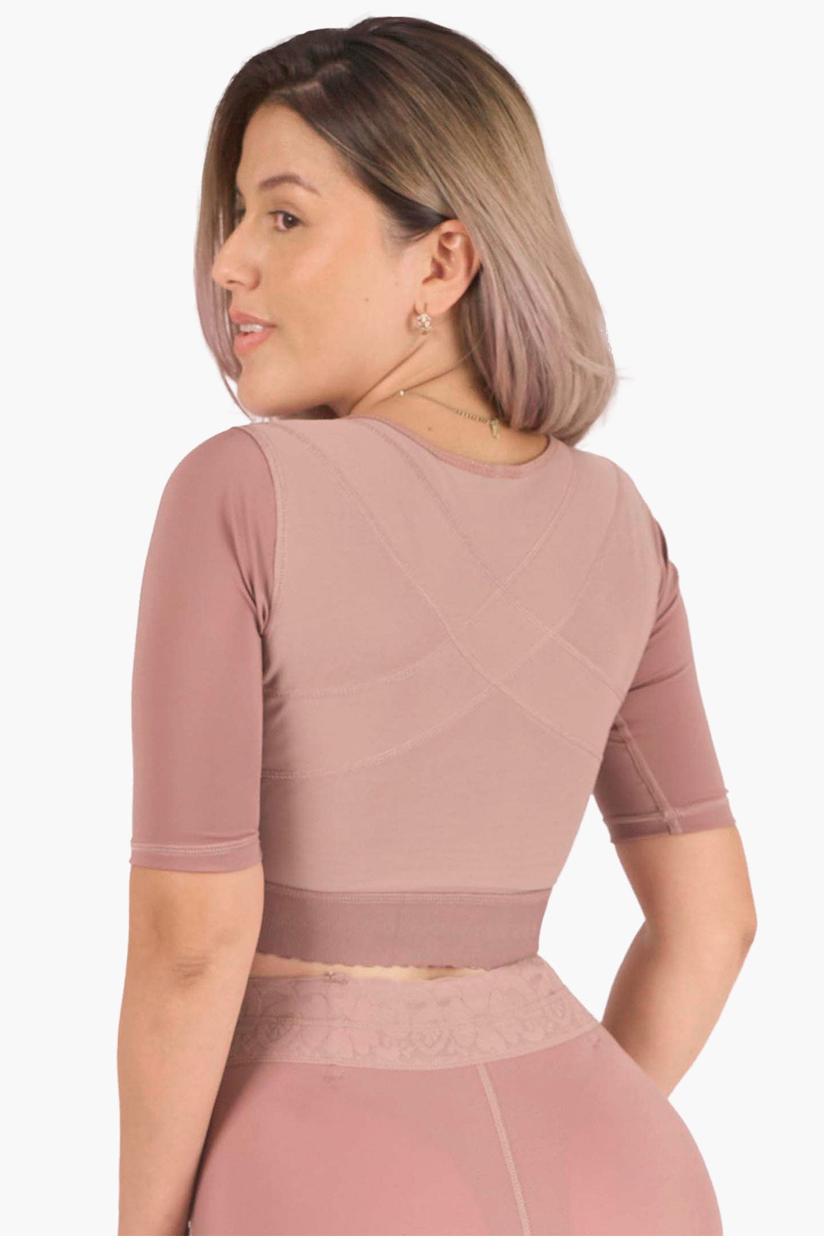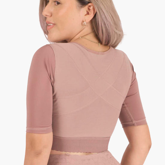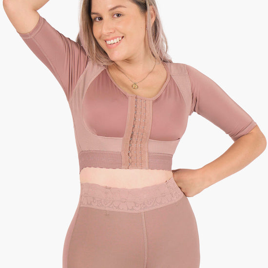 · Brasier postquirúrgico de compresión media-alta que moldea busto, espalda y brazos con total comodidad. Su diseño con mangas ¾ estiliza brazos, mejora la postura y brinda soporte firme. Ideal para desinflamar en la recuperación postoperatoria o para definir la figura bajo cualquier prenda.