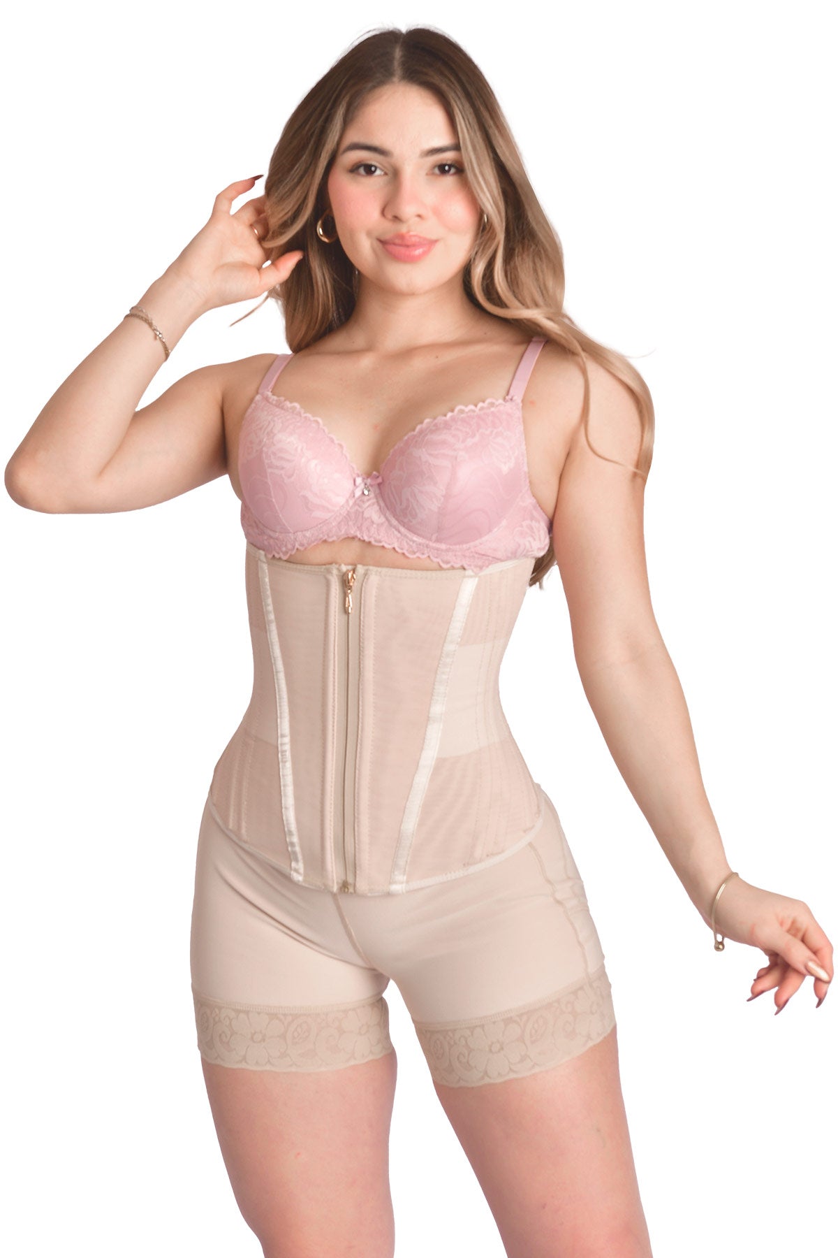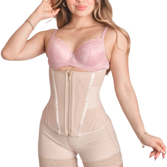 Faja tipo cinturilla de alta compresión, elaborada en powernet externo y algodón interno, con 15 varillas metálicas flexibles y 3 niveles de broches frontales. Moldea y reduce la cintura al instante sin enrollarse. Ideal para uso diario que ayuda a definir la silueta y a reducir tallas con el uso constante.