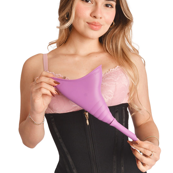 · Dispositivo femenino de silicona flexible que permite orinar de pie de forma higiénica y cómoda. Ideal para uso diario, postquirúrgico, en baños públicos, viajes o actividades al aire libre. Ligero, portátil, reutilizable y fácil de limpiar, se adapta de manera segura y discreta.