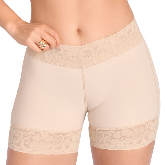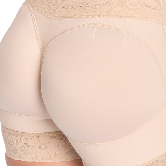 Short faja con efecto Push Up que moldea la figura con comodidad y elegancia. Hecho en tela de compresión moderada, con encaje antideslizante y 4 varillas que brindan soporte abdominal. Su diseño realza los glúteos y se mantiene invisible bajo la ropa, ideal para uso diario.