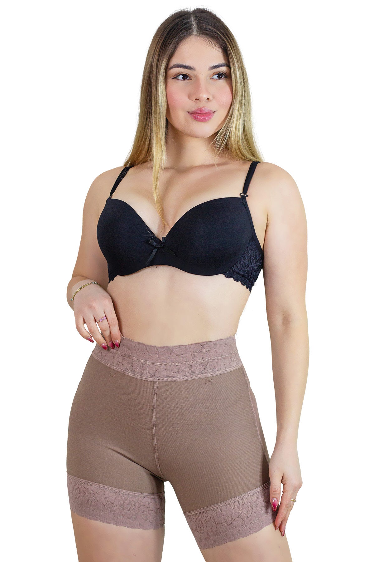 Faja short de control suave con doble capa de compresión que moldea el abdomen y realza los glúteos de forma natural. Su diseño previene el roce entre muslos y se mantiene invisible bajo la ropa, ofreciendo comodidad y estilo para uso diario.